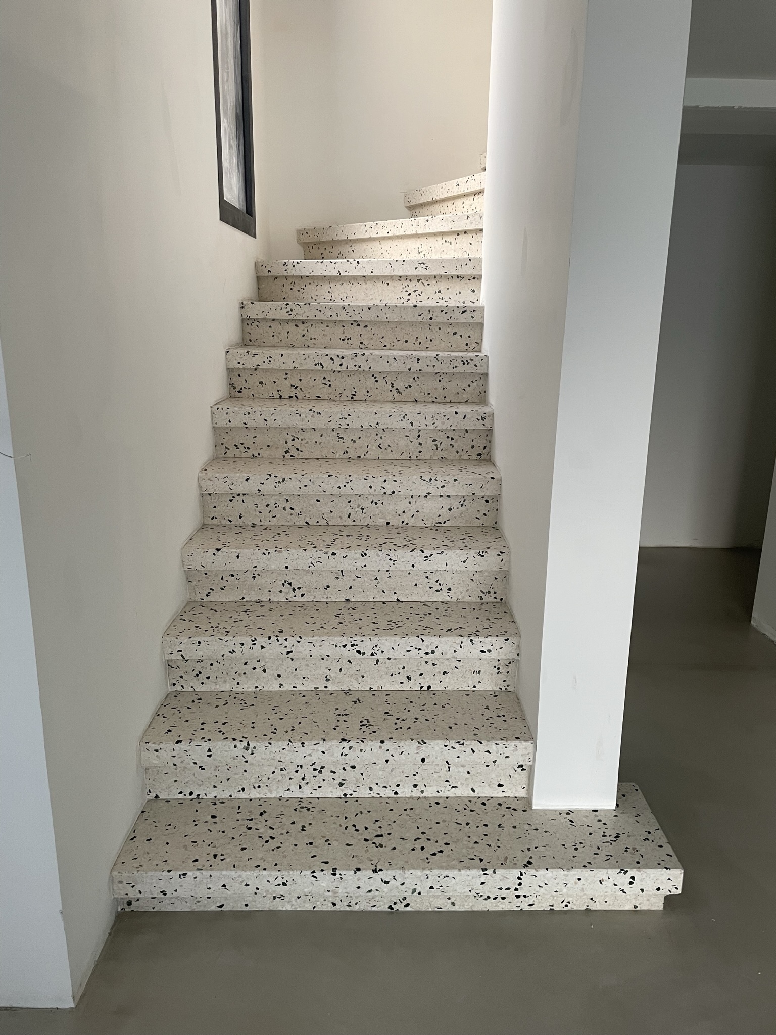 Chaque terrazzo est réalisé sur mesure, avec un large choix de teintes et de granulats pour un rendu unique.